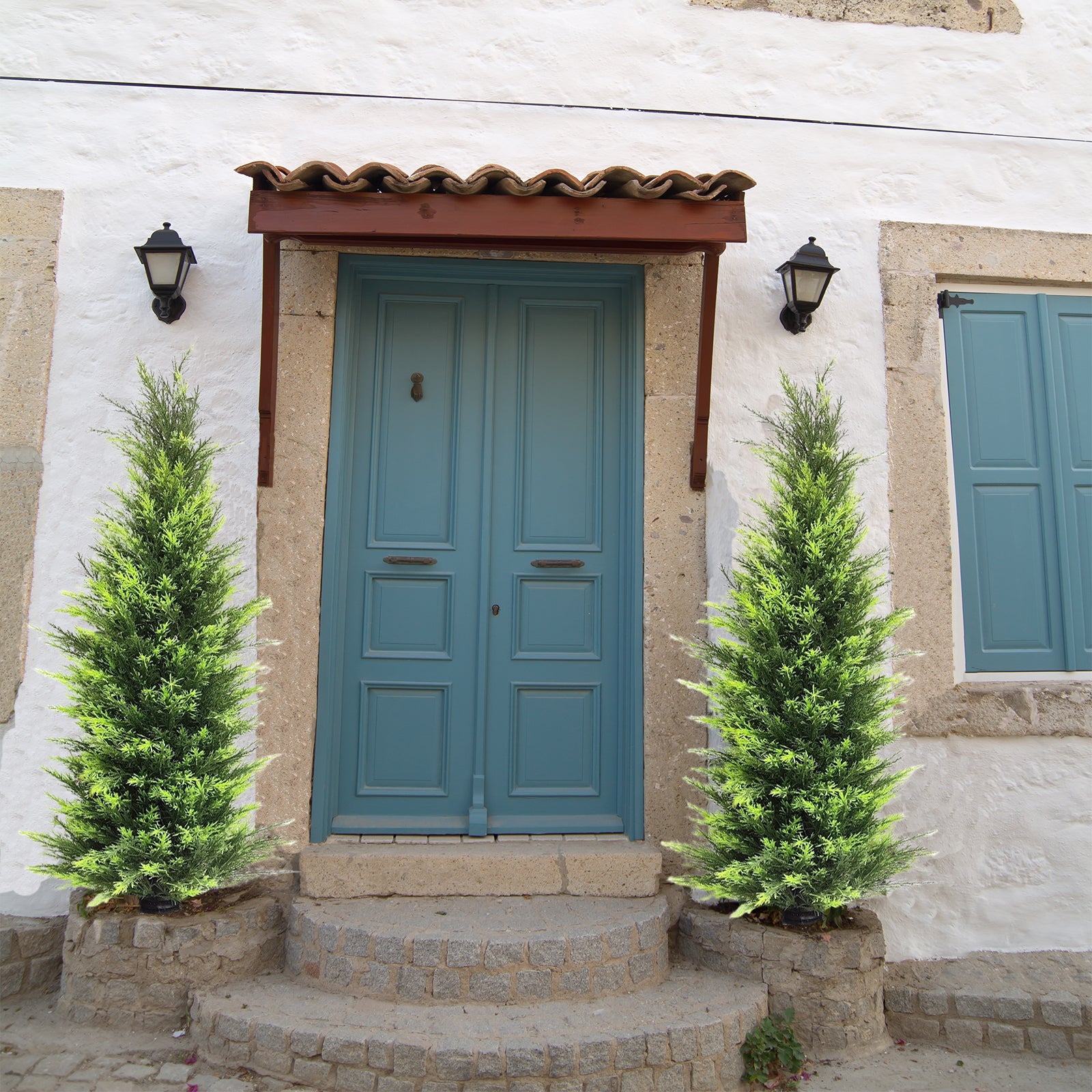 4FT Artificial Cedar Tree for Outdoor Front Door, Outside Home Decor Outdoor Courtyard Farmhouse Decoration Set of 2