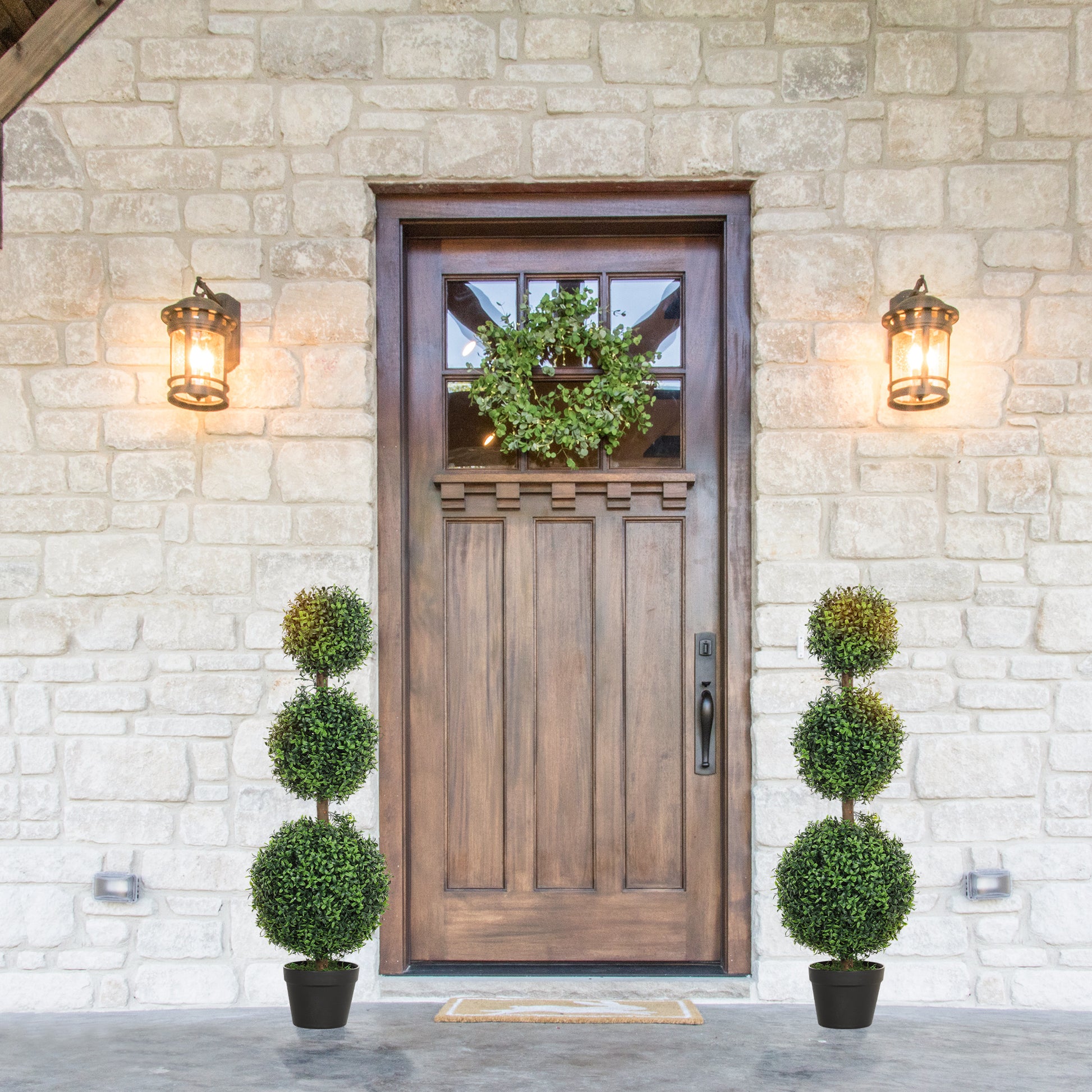 - - Set of two topiary ball-shaped boxwood trees enhance room aesthetics